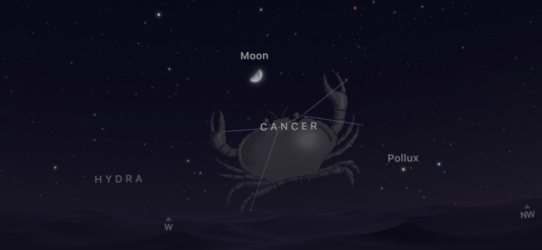 My Sky Guide app also revealed the constellation Cancer the Crab, sitting directly under the moon, although I’m unable to see any of those stars with naked eye: