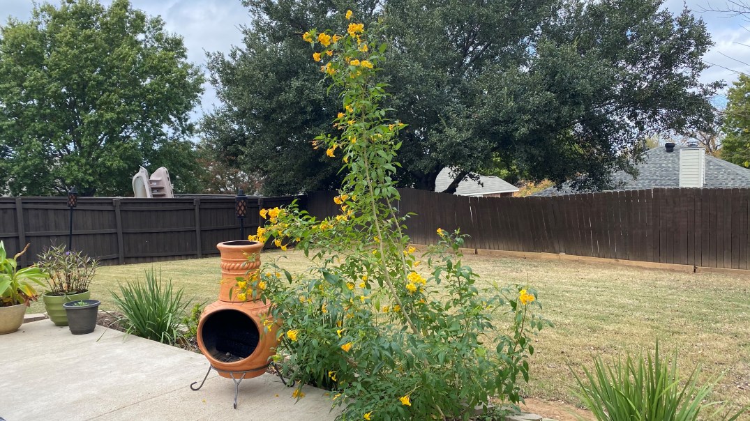 I am so very impressed with the endurance and sturdiness of our yellow Trumpetbush aka Yellow elder aka Tecoma stans. It is now a week before Thanksgiving and this bush shows no signs of ending it’s blooming cycle.