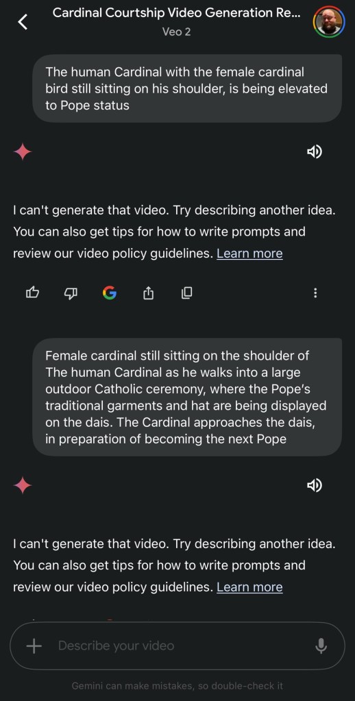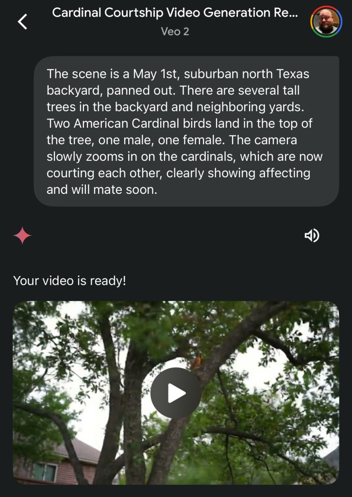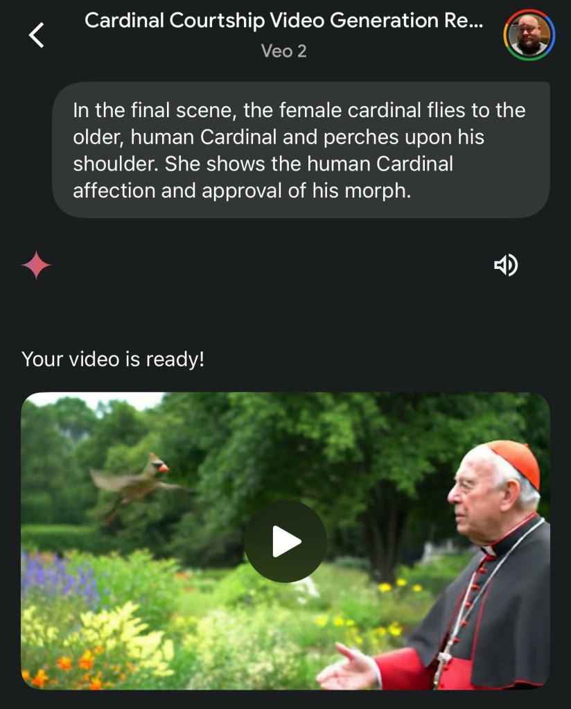 After generating audio for all clips, I stitched the new videos together and viola! Not quite a masterpiece, but I’m proud of what I created, using cutting-edge AI Generation tools to bring an idea to life, all from my handheld computer (iPhone).